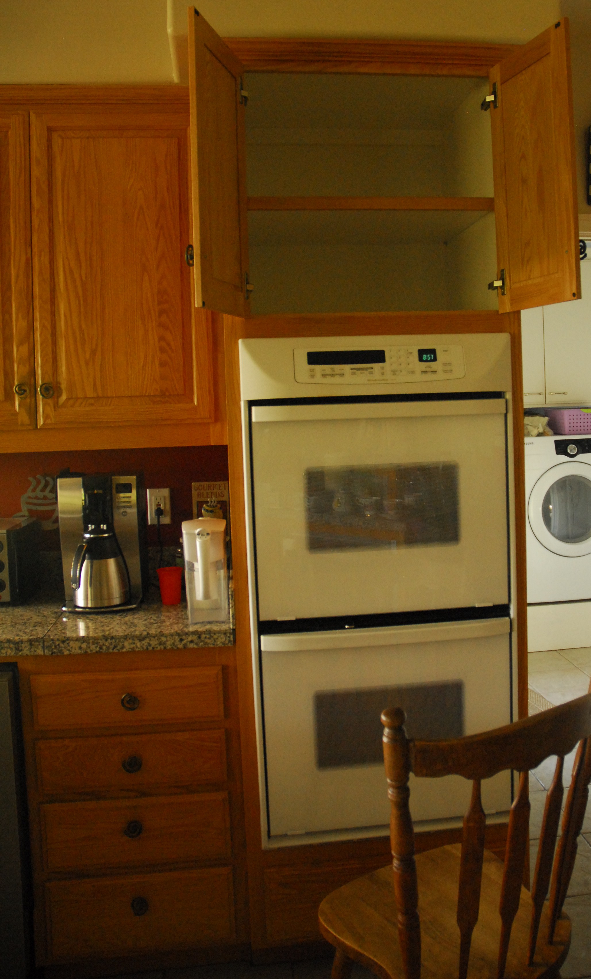Ahhhh…the beautiful sight of an empty cabinet is so worth all the pain I experienced clambering onto the chair countless times.