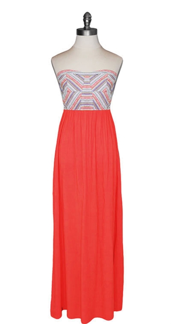 French Connection Women’s Orange Chevron Pattern Long Sundress