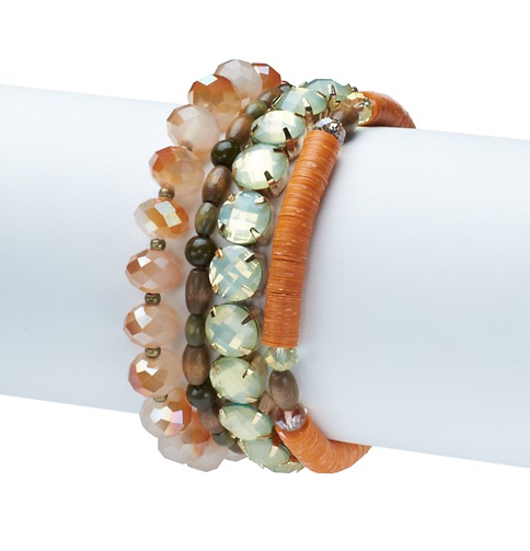 Green and Orange Stone Stretch Bracelet Bunch