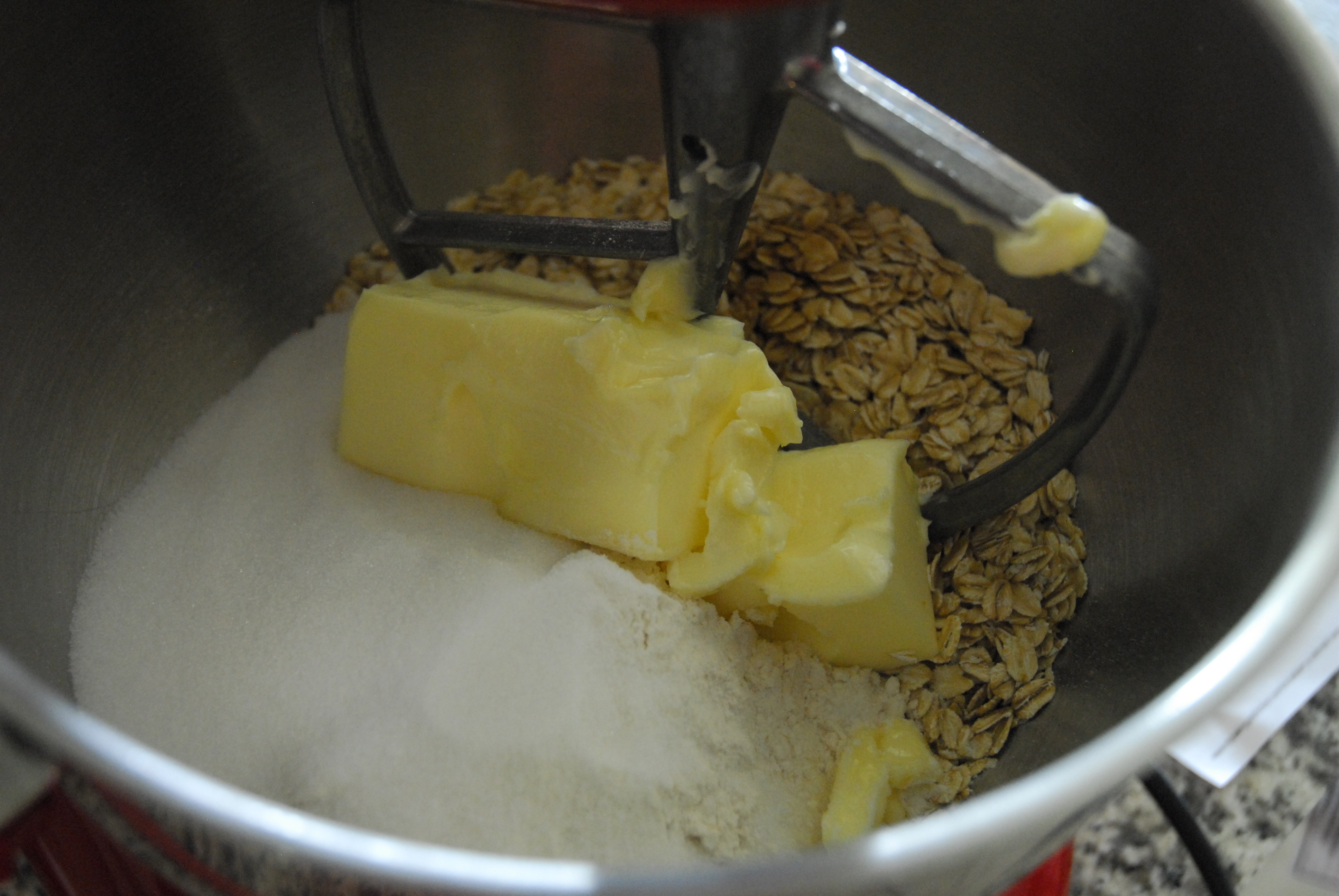 In the bowl of a stand mixer, mix oats, flour, cinnamon, butter, vanilla and sugar on low speed until combined. Scrape down sides of bowl and mix on high speed for an additional minute or so.