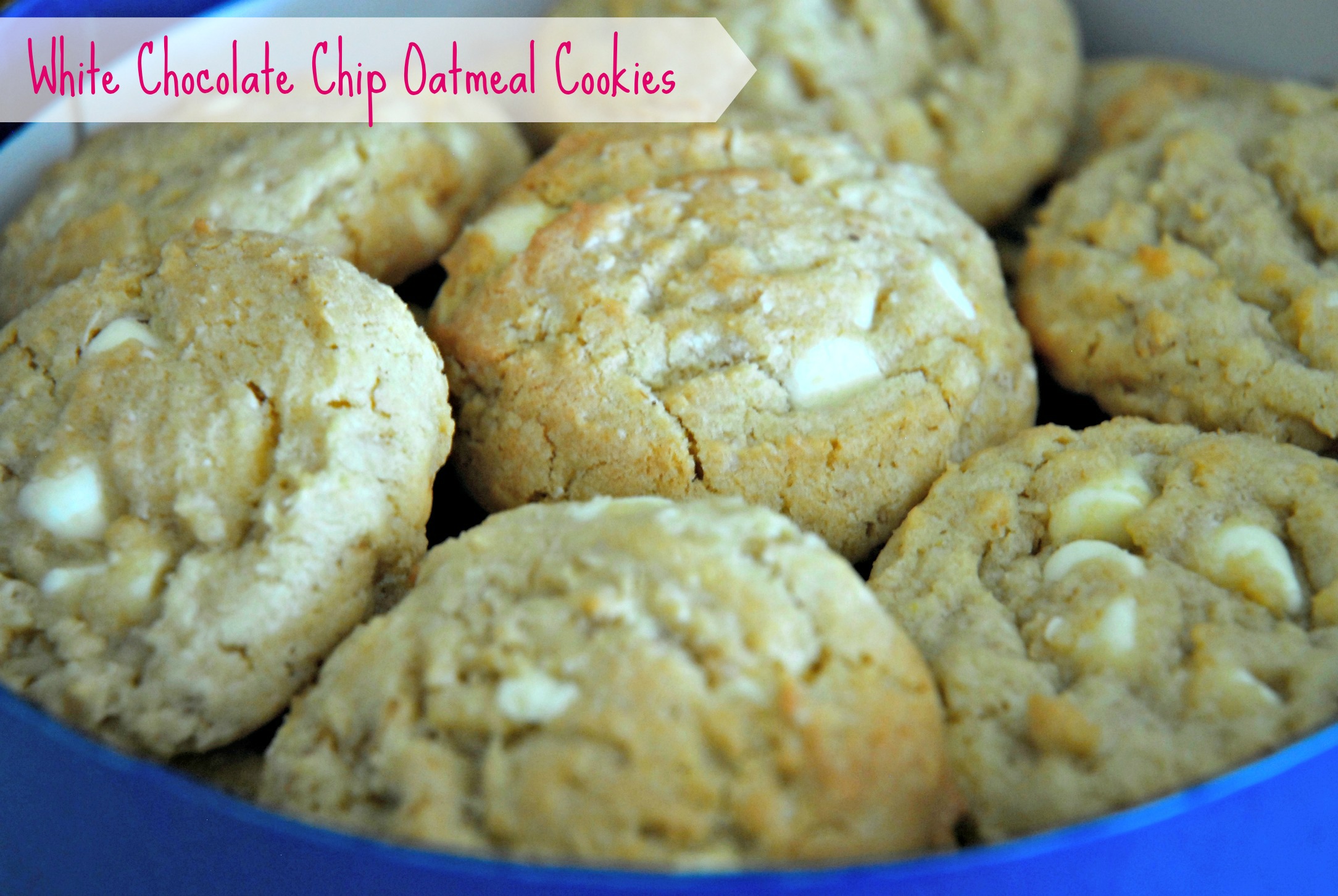 Even though Danae doesn’t like chocolate (somehow I forgive her of that transgression and can still be her friend ;)), she loves white chocolate, so these seemed like the perfect cookies to make her this month. They are so yummy- the texture is really good because of the oats, and the sweetness of the white chocolate chips balances the not-too-sweet dough.