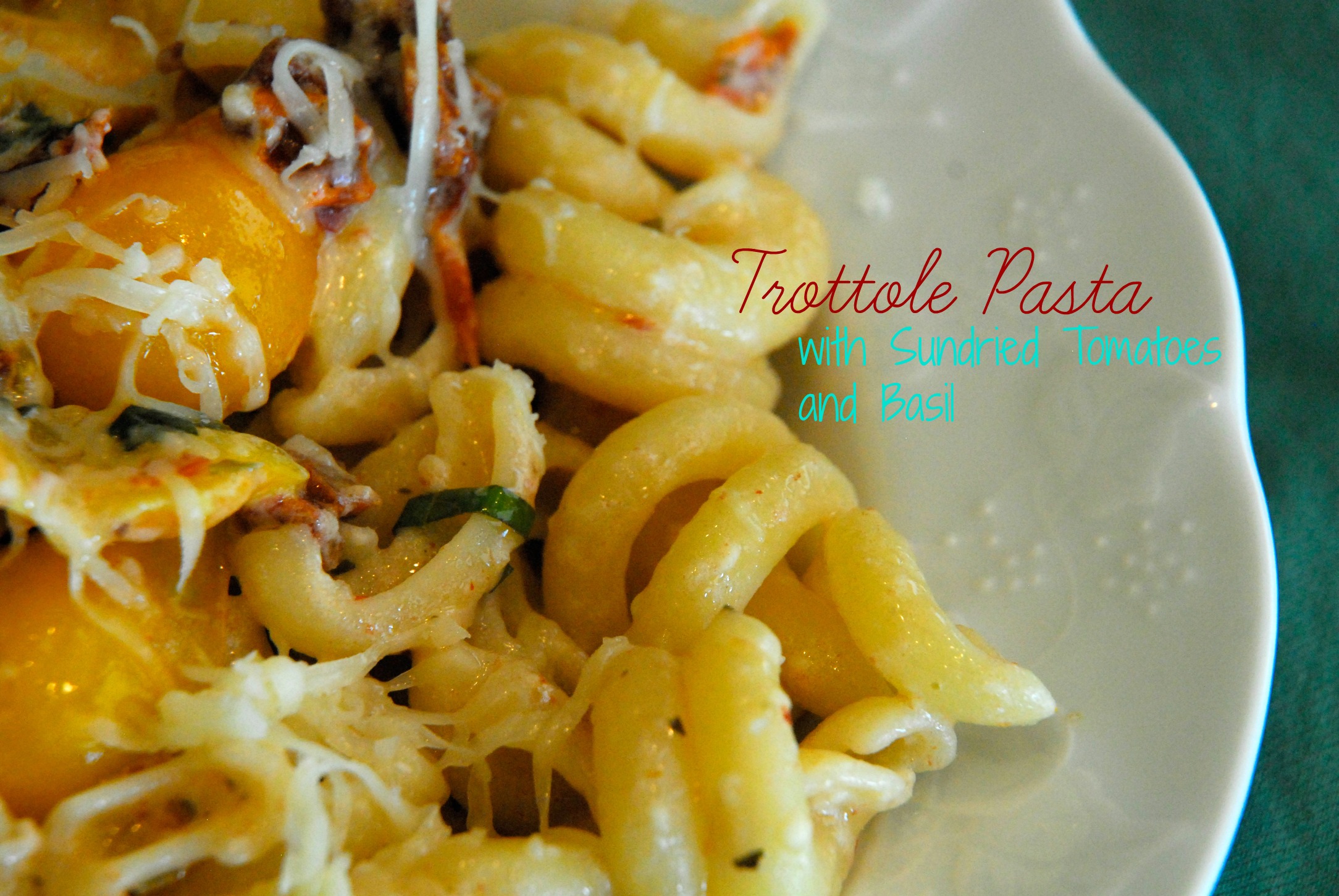 Trottole Pasta with Sun Dried Tomatoes and Basil (creative name, eh?)