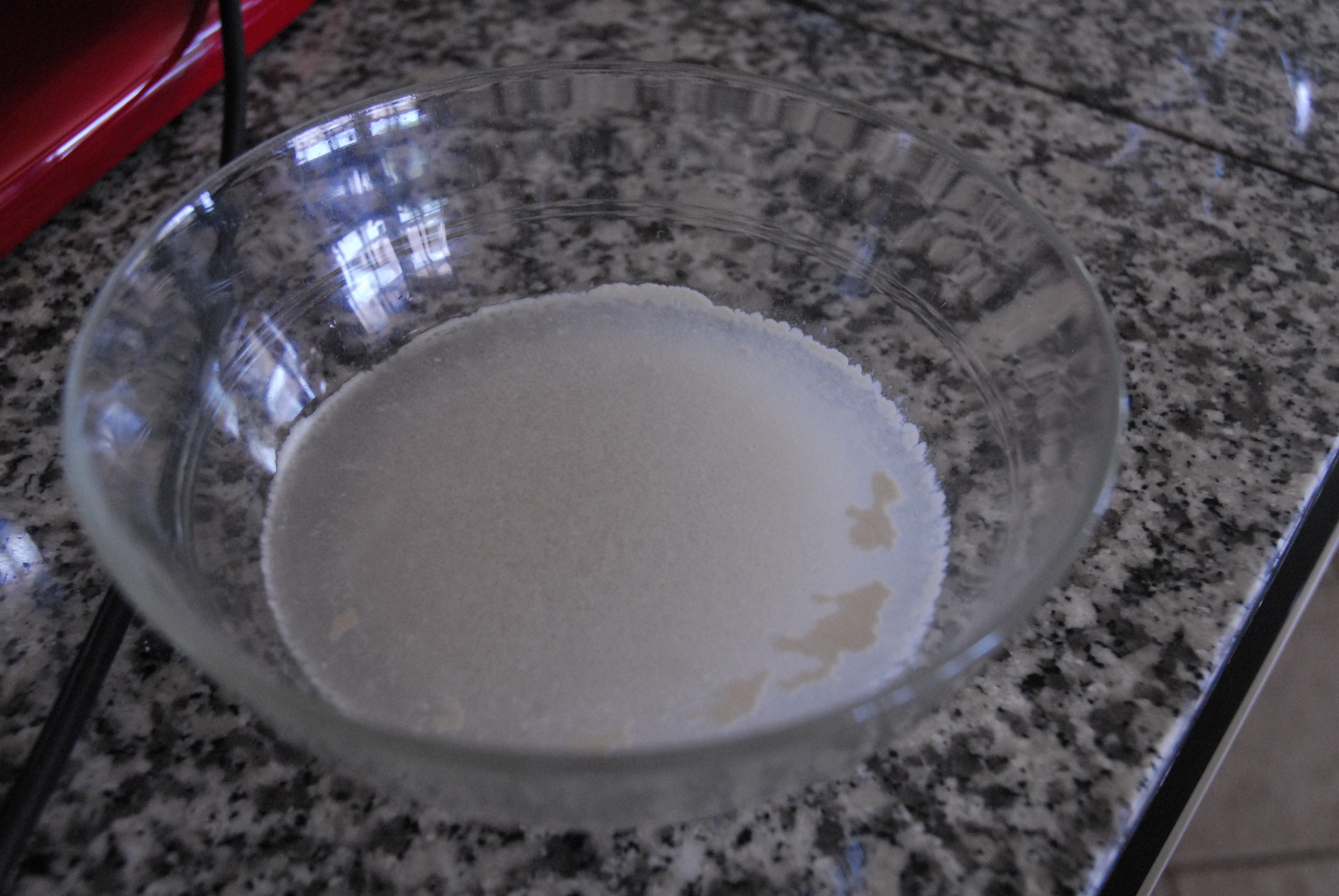 Sprinkle yeast over 3/4 cups warm (not lukewarm) water. Let stand for a few minutes.