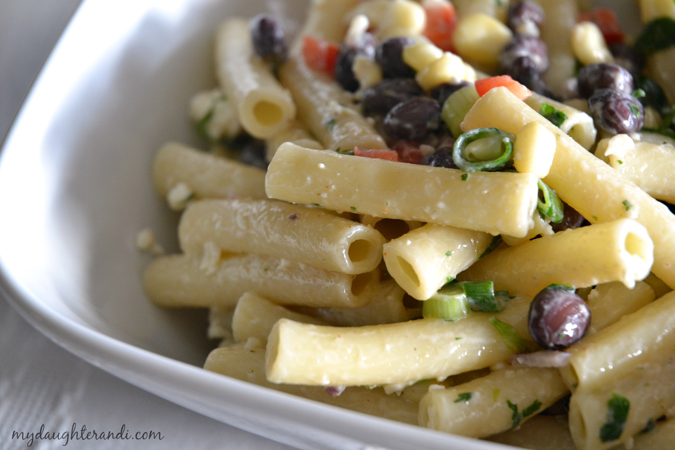 The other day I was in yoga and it was the end of the class where we were supposed to relax and clear our mind. I tried to clear my mind, but I kept thinking about food. More specifically, pasta salad. We had just harvested a bunch of cilantro, so I think that was on my mind too. While relaxing, I came up with the concept for this delicious pasta salad. It is perfect as a main dish – especially with a bit of grilled chicken or avocado hunks in it. We also served it the other night as a side dish with burgers. It’s amazing!