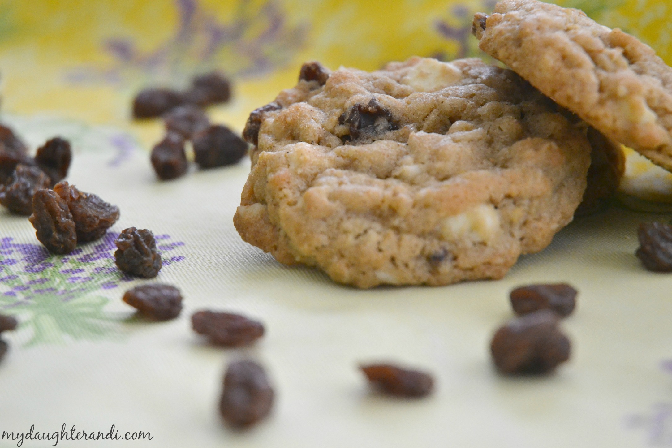 Oatmeal Cookies with Raisins, White Chocolate Chips and Macadamia Nuts